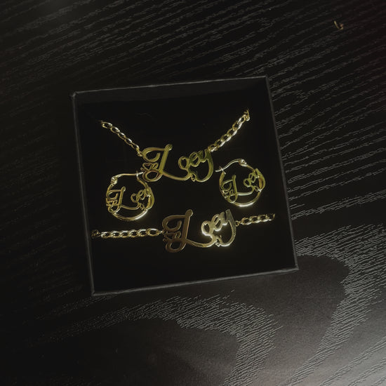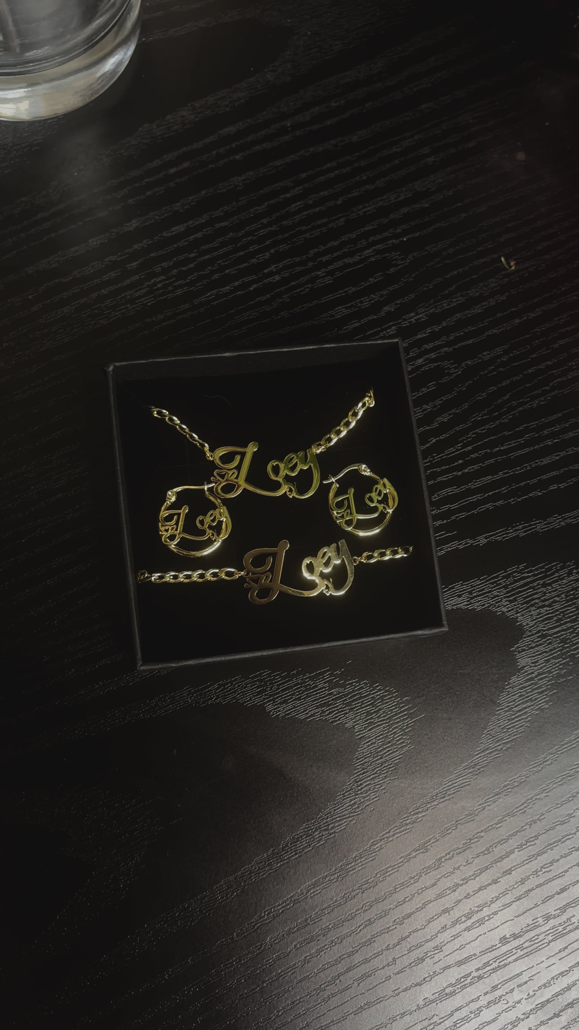 CUSTOM NECKLACE, HOOPS, AND BANGLE